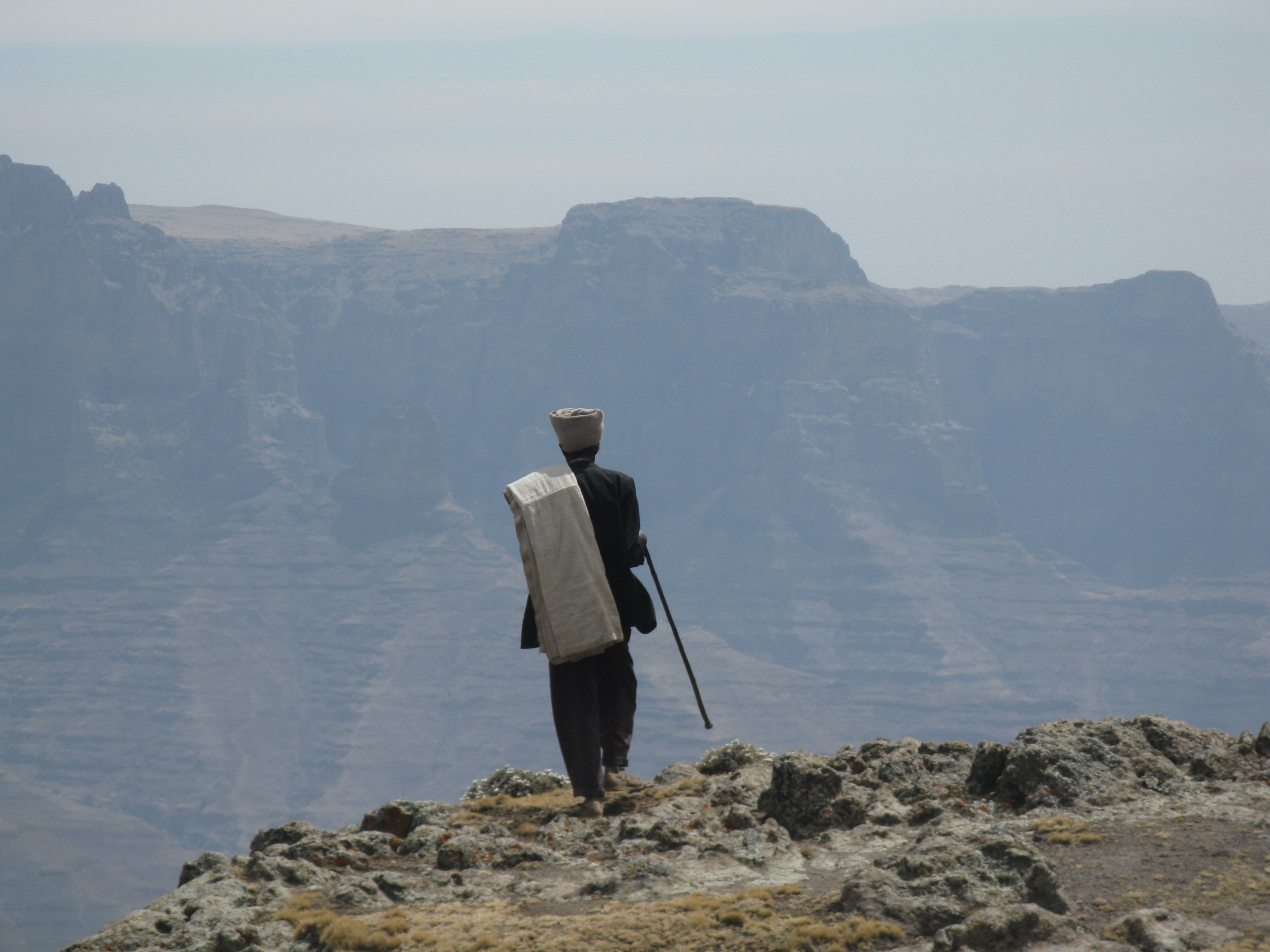 We hobbelen door naar de fabelachtige Simien Mountains, waar mijn kooktoestel weigert vanwege de hoogte en we na twee dagen graag het geweer van de geen woord Engels sprekende verplichte scout in zijn hol zouden duwen. In plaats daarvan stuitert hij met zijn reet het bankje achterin Landcruiser naar de filistijnen. Tip voor iedereen die daar in de toekomst heen gaat: neem een gids mee als vertaler.
