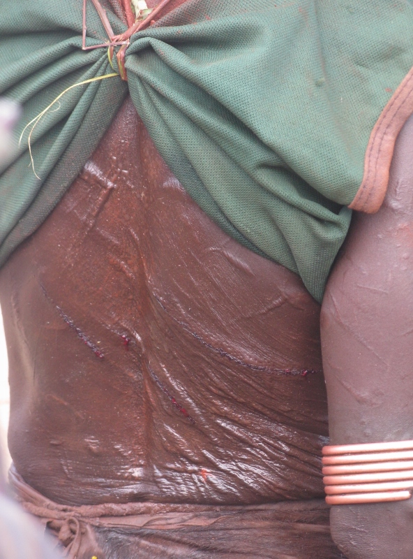 De gids duwt je naar een jongen in een gestreepte doek. Kaalgeschoren hoofd rondom een borstel van kroeshaar. Een witbruine koeienhuid losjes rond zijn blote borst gedrapeerd, simpele sandalen, geen decoratie. Je geeft hem een hand, wenst hem succes. De jongen knikt afwezig. Je maakt een foto.
