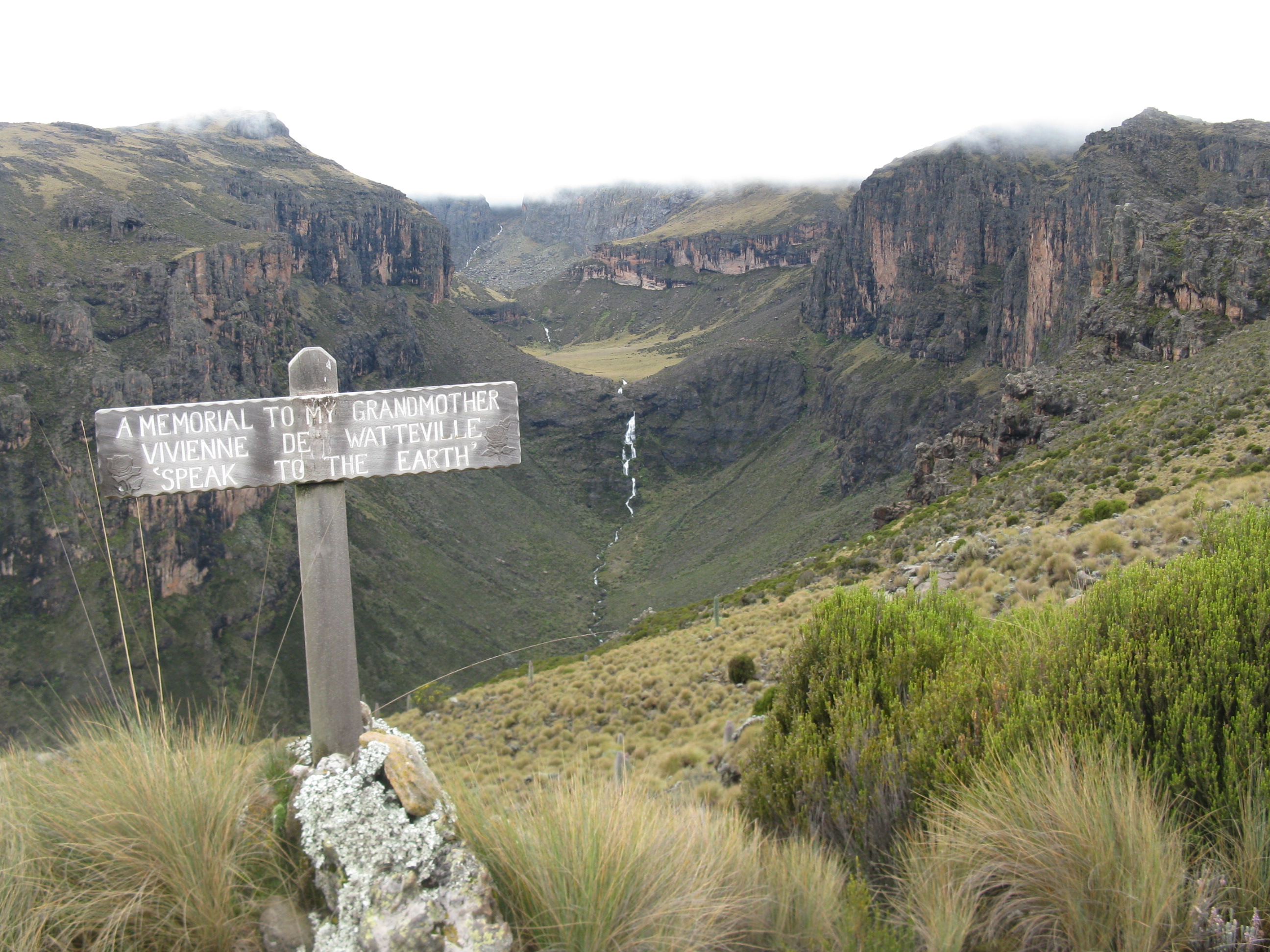Dag twee van de daadwerkelijke trek naar de top voerde me boven langs een kloof met uitzicht op een waterval. De naam was Vivienne Falls, naar een vrouw die daar ooit naar beneden was gevallen. Bij het uitzichtpunt stond een bordje ter nagedachtenis. Zo’n graf wil ik ook wel, dacht ik. Als ik ooit sterf, I, wil je dan een mooie plek zoeken, moeilijk bereikbaar, op een hoge berg, en me daar begraven? Zodat onze kleinkinderen tenminste één keer in hun leven een reden hebben om een uitdagende tocht te maken, een avontuur te beleven, namelijk om het graf van hun grootvader op te zoeken? Zodat ze daar, op die berg, met uitzicht op de wilde stille natuur, kunnen bedenken waarom ik daar lig?