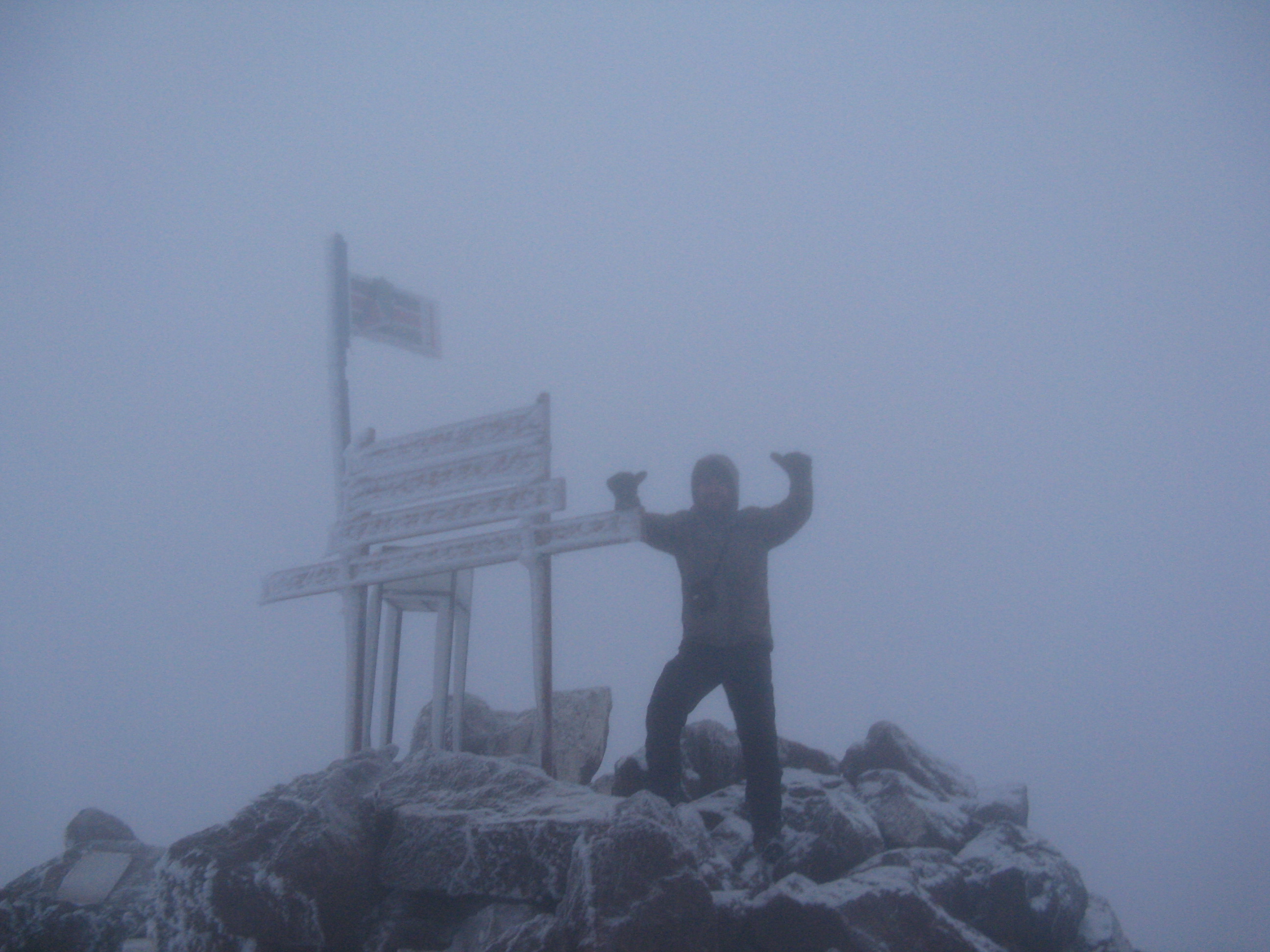 Dag twee ging naadloos over in dag drie, toen ik na een vroeg bord spaghetti om zes uur de slaapzak in kroop (met al mijn kleren aan!), om rond twee uur ’s nachts weer op te staan en na een kopje thee met biscuitjes de laatste push naar de top te maken. Het was donker en mistig, met mijn zaklamp kon ik Loi, die een meter voor mij liep, net onderscheiden. Na een uur omhoog klauteren over modderige paadjes, langs manshoge keien, wadend door zompige vlaktes en klaterende stroompjes, begon het te sneeuwen.