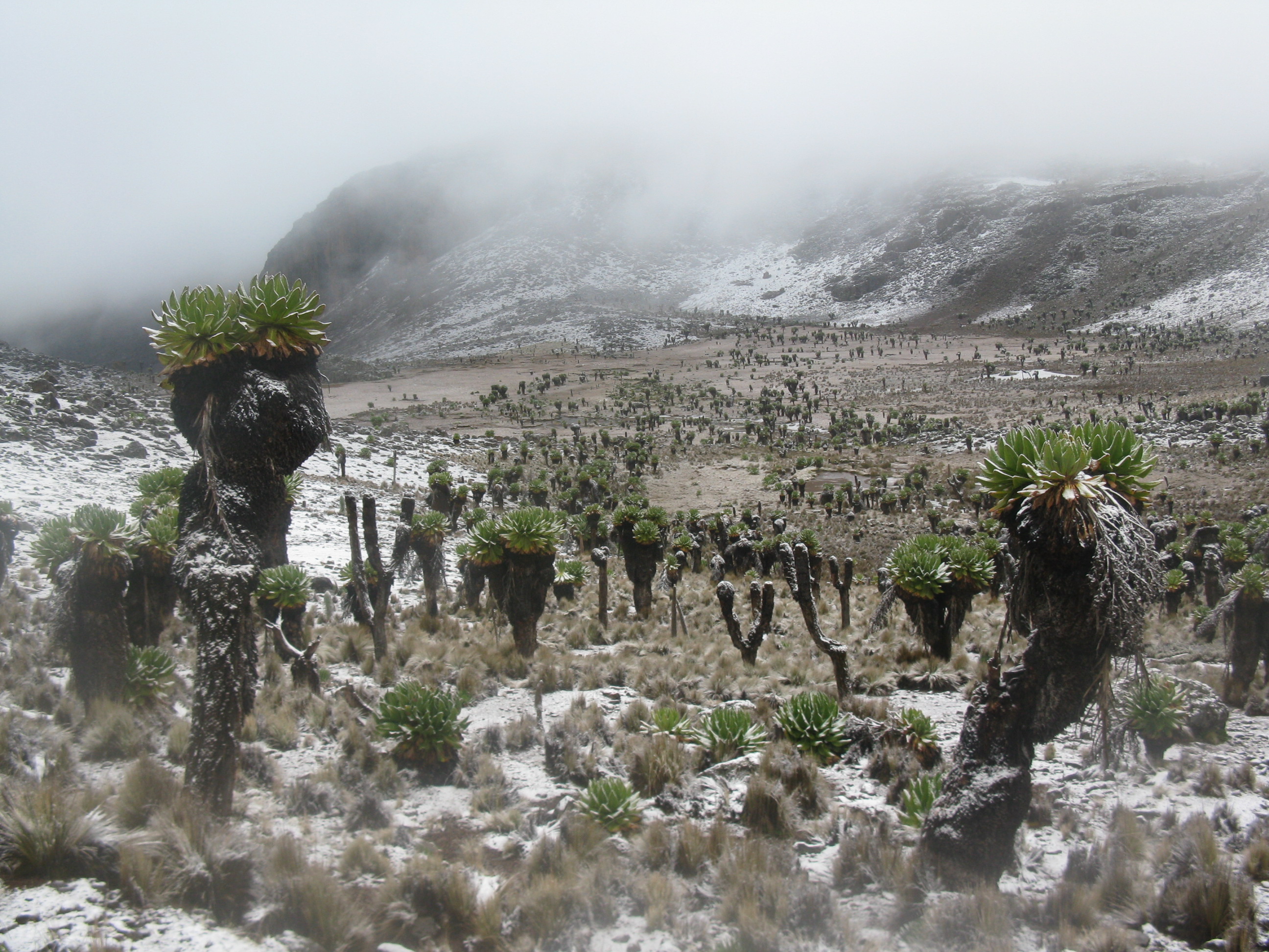 Het was zes uur in de morgen toen we de top, Point Lenana (4985 meter), bereikten. Precies op schema om de zon te zien opkomen. Alleen was er geen zon. Alles was gehuld in een ondoordringbare mist. Heel even verscheen een oranje waas, die meteen weer verdween achter een ijzig wit. Er was niets te zien.