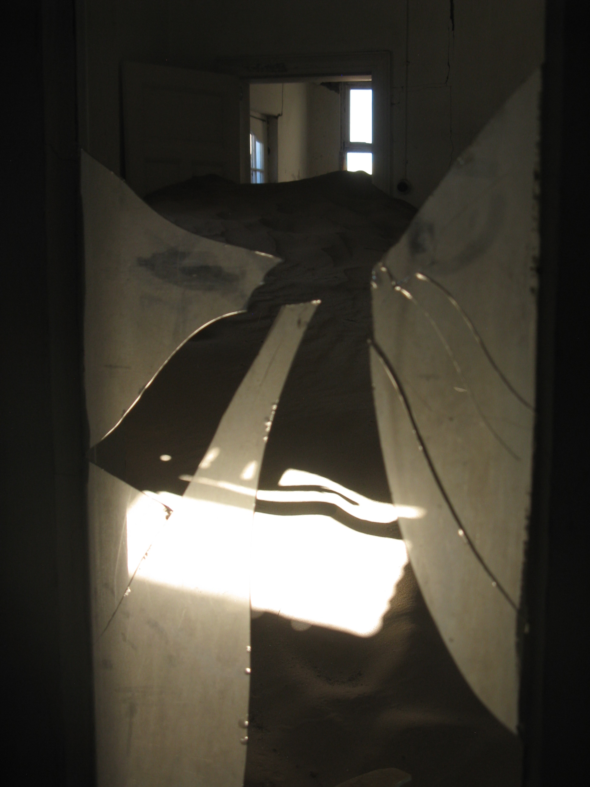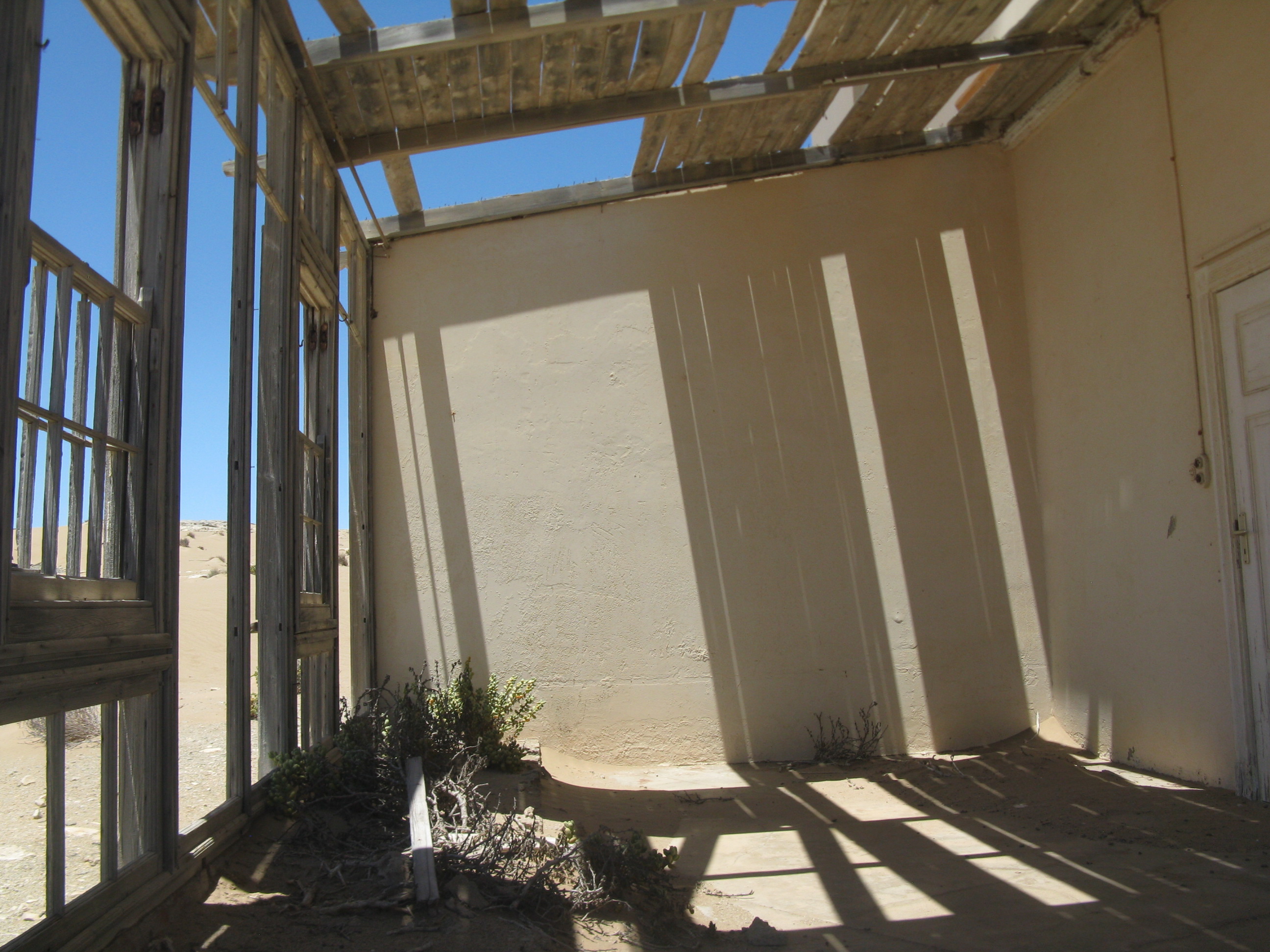 Ik breng Gabriel naar huis, tien kilometer buiten de stad. Hij woont op een open dorre vlakte in een hutje dat hij zelf gebouwd heeft. Elektriciteit via zonnepanelen, geen stromend water. Maar het ziet er knus uit en er ligt een heel groot stuk land omheen. Hij wil een kippenboerderij beginnen, zegt hij. Van alleen het geld dat hij verdient als gids kan hij niet leven, en ook zijn vrouw zit zonder werk. We drinken een cola op zijn erf en bespreken de mogelijkheden. Misschien wil hij zelfs het stuk land kopen dat naast dat van hem ligt. 600 Namibian Dollar.