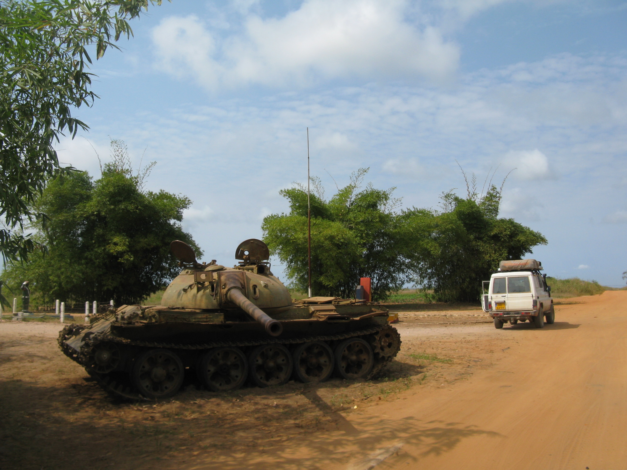 Mogelijkheid drie lijkt de beste optie: in Matadi is een brug over de Congo. Vanaf daar loopt een, op het eerste gezicht, redelijke weg richting Boma en Muanda, naar Cabinda. Nu moet je weten, I, dat Cabinda een merkwaardig stukje land is. Het is een losstaand deeltje van Angola dat in DRC ligt en in het noorden grenst aan Congo Brazzaville. Je kunt dus vanuit DRC door Angola naar Congo Brazzaville (volg je het nog?). Maar als ik die route neem, moet ik dus een tweede keer Angola in.