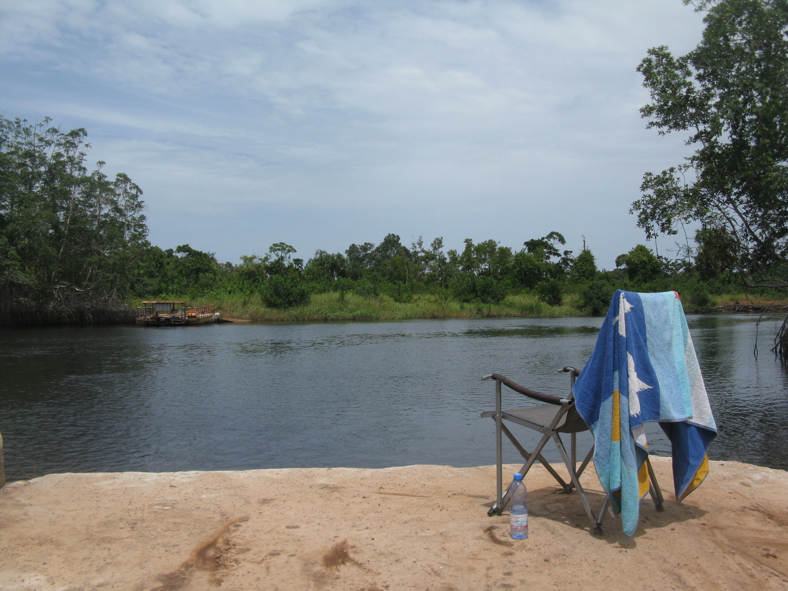 Twee dagen later probeer ik een bezoek te brengen aan Tchimpounga, een chimpanseereservaat van de Jane Goodall Foundation dat iets verder naar het noorden ligt, maar ik mag er niet binnen – er wordt verbouwd en ze kunnen, of willen, geen gasten ontvangen. Dan maar naar Conkouati, het park een stukje verderop. De entree is niet misselijk, maar ik wil iets doen en men belooft mij allerlei dieren die hier zouden zitten, dus ik betaal. En ik moet ergens de rivier over, maar dat is geen probleem, zegt men. Dat blijkt te kloppen, het is geen probleem. De veerman wil alleen omgerekend twintig euro voor de overvaart, die misschien net vier keer de lengte van de veerpont telt. En ik moet ook weer terug, dus dat betekent nog eens twintig euro. Graag nu het volledige bedrag betalen. Het lijkt mij dat ik hier gigantisch word afgezet, dus ik ga de discussie aan. Uiteindelijk is de veerman zo boos dat hij me wegstuurt zonder geld te willen. Dat lijkt mij dan weer geen goede oplossing, want ik zie het al gebeuren dat hij me straks aan de andere kant laat staan als ik terugkom, tenzij ik het driedubbele betaal. Ik ben van hem afhankelijk. Ik betaal uiteindelijk 15 euro.