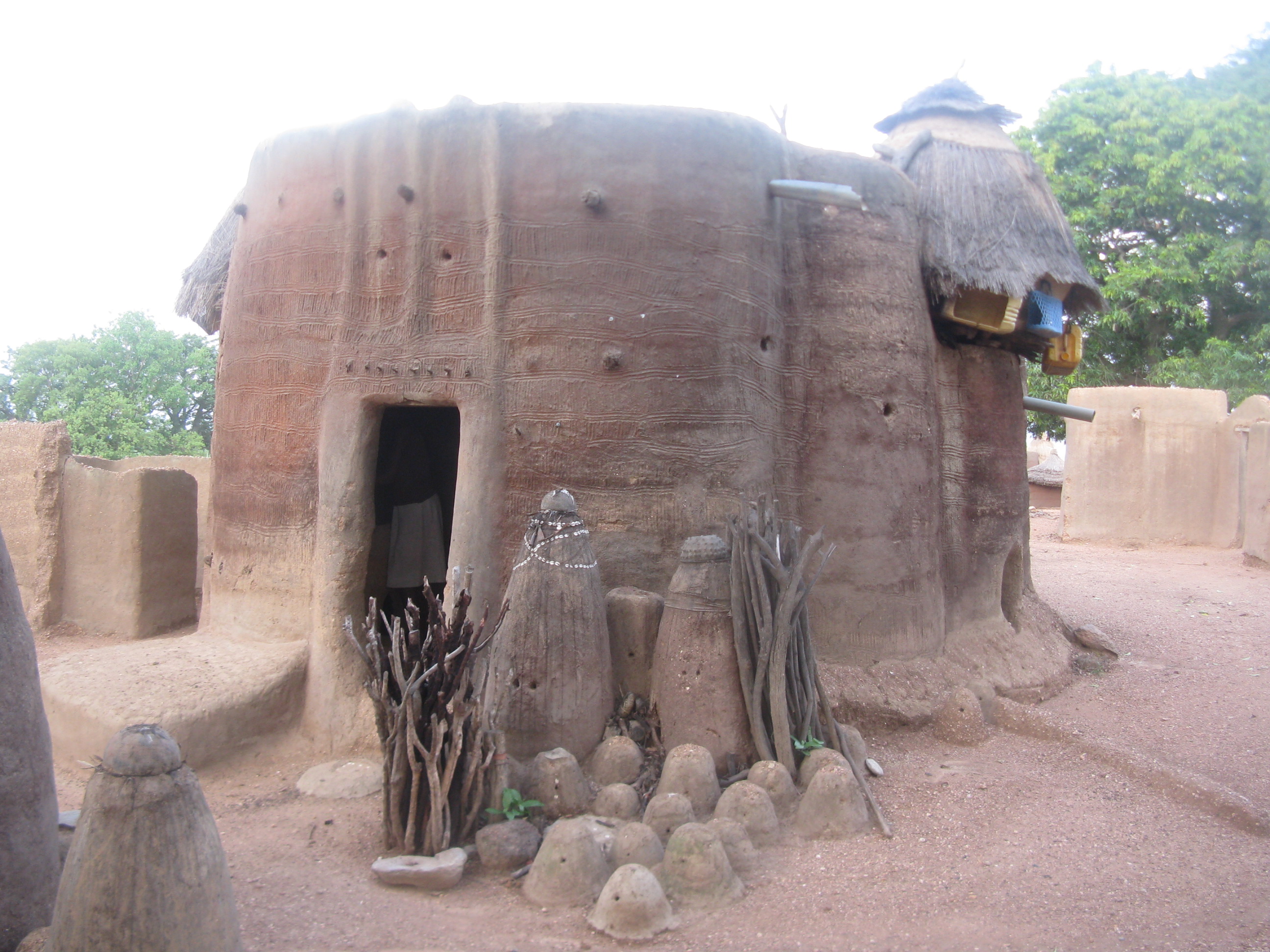 Net ten zuiden van het park stak ik de grens over naar Togo. Opnieuw ging dat allemaal minder soepel dan je zou hopen, omdat ik aan de grens eerst veertig kilometer teruggestuurd werd om een stempel te halen en ik vervolgens ten kantore anderhalf uur moest wachten totdat de stempelkoning klaar was met lunchen. Aan Togolese zijde wisten ze weer eens niks van een visum, dus dat moest ik maar regelen in Kara, de eerstvolgende stad. Ik overnachtte in Koutammakou , tussen de traditionele modderhuisjes, gebouwd in unieke stijl door mensen die probeerden te ontsnappen aan de bloeddorstige Dahomey-koningen. De huisjes zien eruit als kleine forten, met verhoogde torentjes op de hoeken en een muur daartussen. Achter de deur was een doorgang ter hoogte van een geit zodat je nogal moest bukken om echt binnen te komen, wat het onmogelijk maakte om het huis in te stormen. Bovendien diende de begane grond als stal, waardoor eventuele indringers eerst door een kudde geiten of schapen heen moesten om bij de mensen te komen, die zich op de eerste verdieping verschansten en van daaruit onwelkome gasten konden bestoken met pijl en boog of speren. De bewoners waren animisten, wat betekent dat ze niet alleen een ziel toeschreven aan mensen en dieren, maar bijvoorbeeld ook aan planten, bomen, stenen, rivieren en rotsformaties. Voor elk huis stonden hoopjes van aardewerk, die de leden van het gezin plus overleden (voor)ouders symboliseerden. Op die manier maakten ook de doden nog altijd deel uit van het aardse leven en kon met hen gecommuniceerd worden. Niet alleen de huisjes waren bijzonder om te zien, ze stonden ook in een uiterst vriendelijk ogende omgeving van glooiende groene akkers, gelardeerd met oeroude baobabs. De ondergaande zon wierp een magisch licht over het geheel en toen het eenmaal donker was sliep ik in onder een oneindige sterrenhemel, bij het geruststellende geluid van blatende schapen en knorrende varkens.