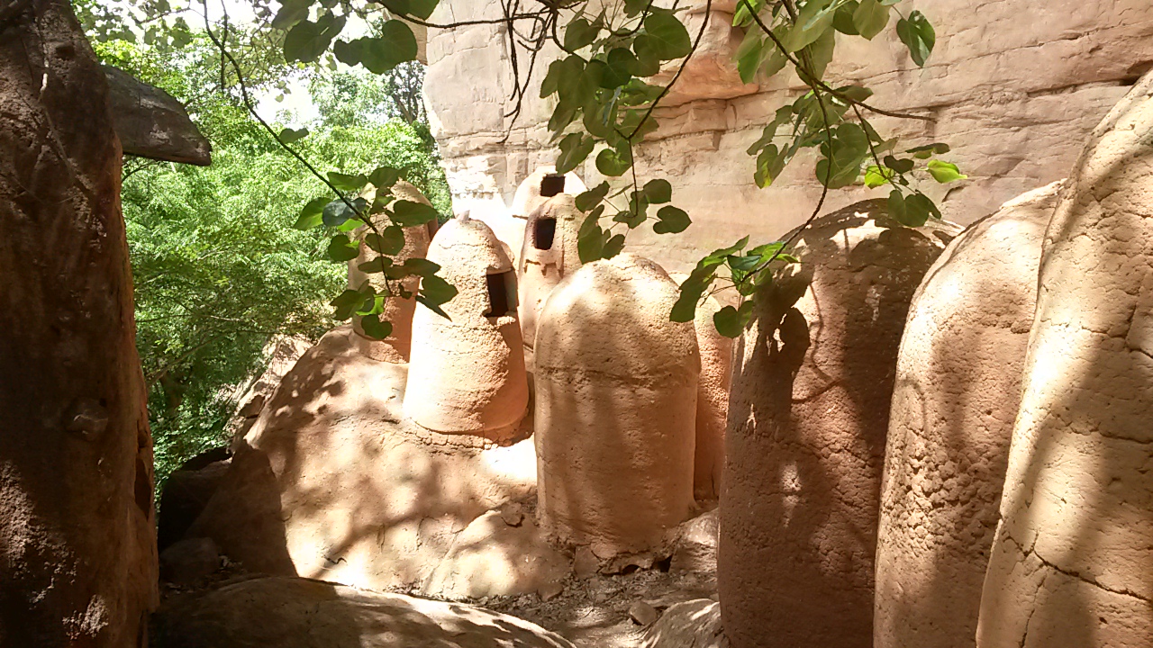 Rondom Banfora, even ten zuidwesten van Bobo-Dioulasso, is van alles te zien en te doen, maar niks daarvan is uitzonderlijk spectaculair. Desondanks hebben alle sights van enige betekenis hun eigen charme, juist ook omdat er niet veel toeristen komen en de mensen daarom nog gewoon vriendelijk zijn. Ik bezocht de koepelvormige Dômes de Fabedougou, de getrapte Cascades de Karfiguéla en de ogenschijnlijk gebeeldhouwde Pics de Sindou. Ik maakte een boottochtje op Lac de Tengréla en crosste achterop een brommertje door het oerwoud naar de Baobab Sacré, een heilige holle boom, waar een dronken gids een onbegrijpelijk verhaal afstak over voorouders. Het meest onder de indruk was ik van Niansogoni. Samen met drie Fransen en gids Solo reed ik twee uur over zandweggetjes, door water- en modderplassen richting de Ivoriaanse grens, zij op twee brommertjes, ik in de auto erachteraan. Ik had geen idee waar we precies heen gingen, had alleen iets gehoord over een verlaten dorp. Het bleek dat we het laatste stuk erheen moesten lopen, een half uur, steil bergop. We klauterden om de kale heuveltop heen en ineens stonden we er middenin. Een overhangende rots vormde een hoge grot die aan de open kant werd afgeschermd door dichte begroeiing. De grot was volgebouwd met lemen, barbapapavormige huisjes en voorraadschuren, compleet onvindbaar als je niet precies wist waar te zoeken. Dat was natuurlijk ook het idee; dit was de ontsnappingsplek geweest van de mensen in het dorp beneden. Maar liefst driehonderd bewoners konden zich hier verschuilen voor eventuele aanvallers. De huisjes stamden uit de 14de eeuw en waren nog tot 1980 in gebruik geweest. Het was een wonderbaarlijke plek, zeker als je geen verwachting had van wat je ging zien, zoals ik.