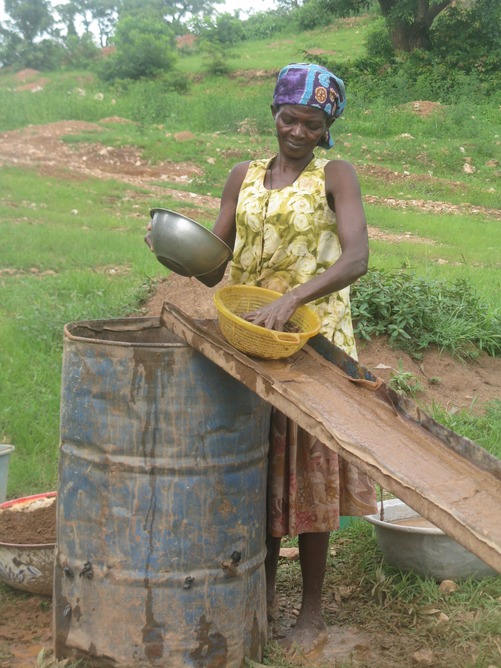 Terug bij de auto zag ik twee vrouwen die grond stonden te zeven. En nu begreep ik wat de jongens die ik eerder had gezien stonden te doen. Zij maakten gruis van stenen en de vrouwen hier zeefden dat gruis, hopend dat er goud overbleef. Het leek mij allemaal nogal arbeidsintensief, maar tijd kost in Afrika niks en voor mensen die niks hebben is elke goudschilfer er één.